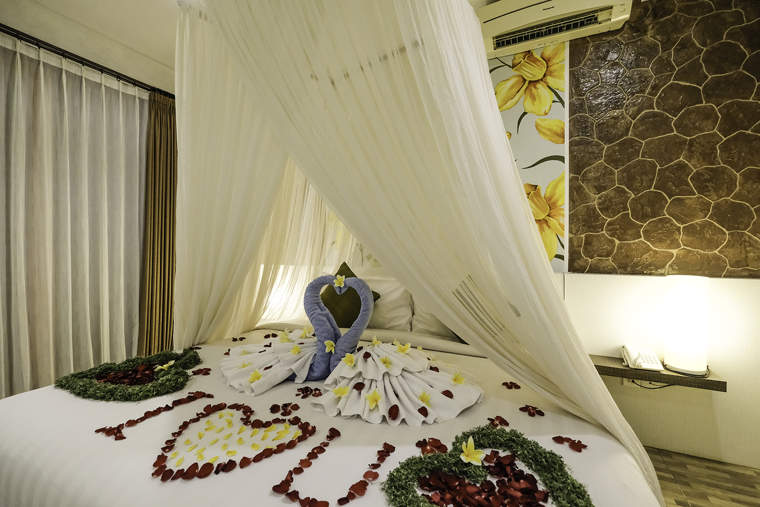 Each villa has a 2 rooms with different types of rooms which is a 60 m2 King room equipped with a double bed and bathtub in the bathrooms in a queen room with an area 30 m2 equipped with a double bed and shower. And also each villa has a private pool with depth start from 1.20 – 1.35 m .